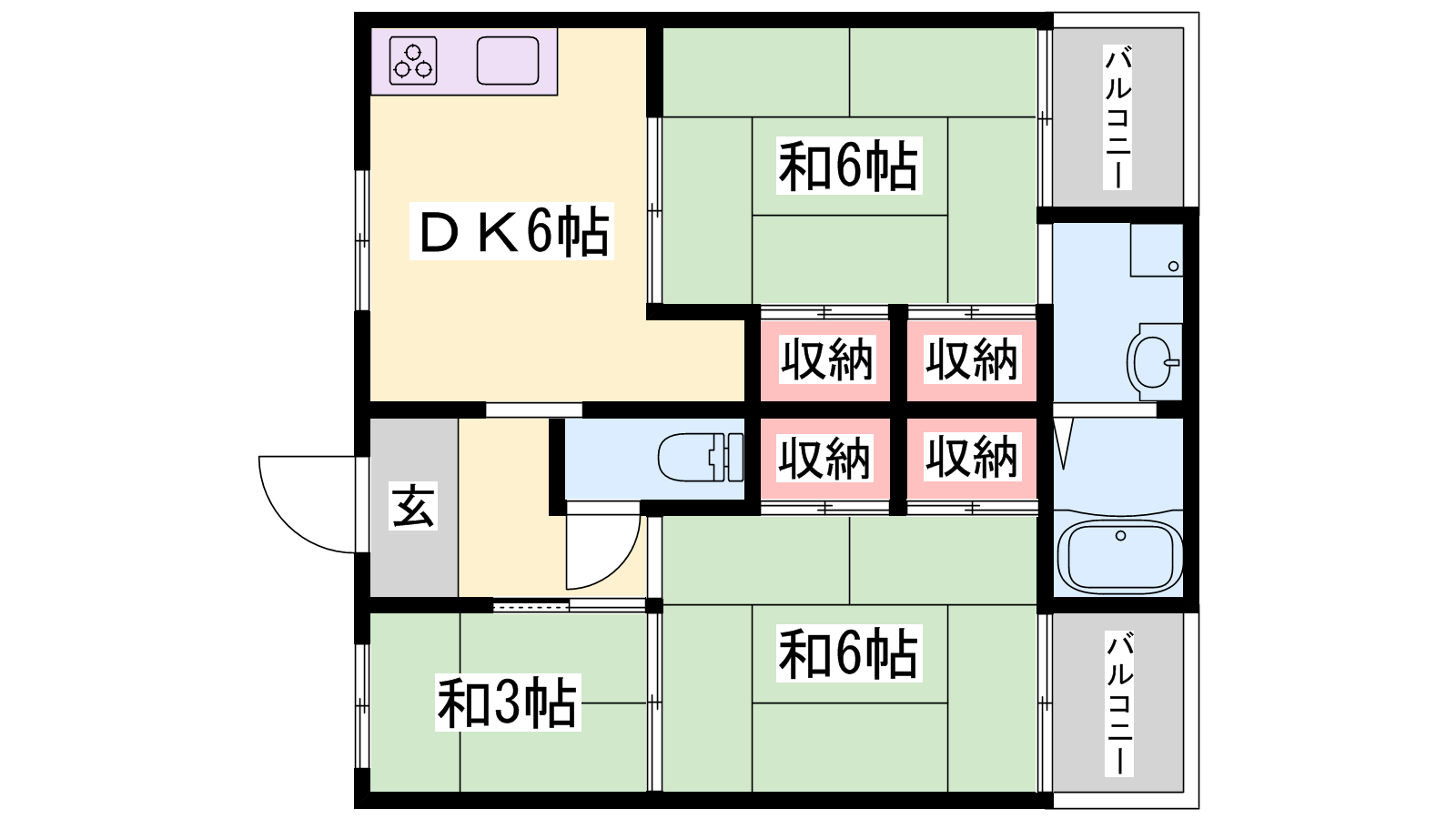 - DK6帖、和室6帖、和室6帖、和室3帖