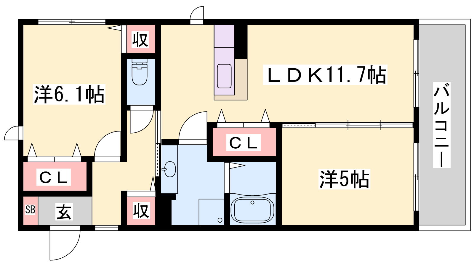 - LDK11.7帖、洋室6.1帖、洋室5帖
