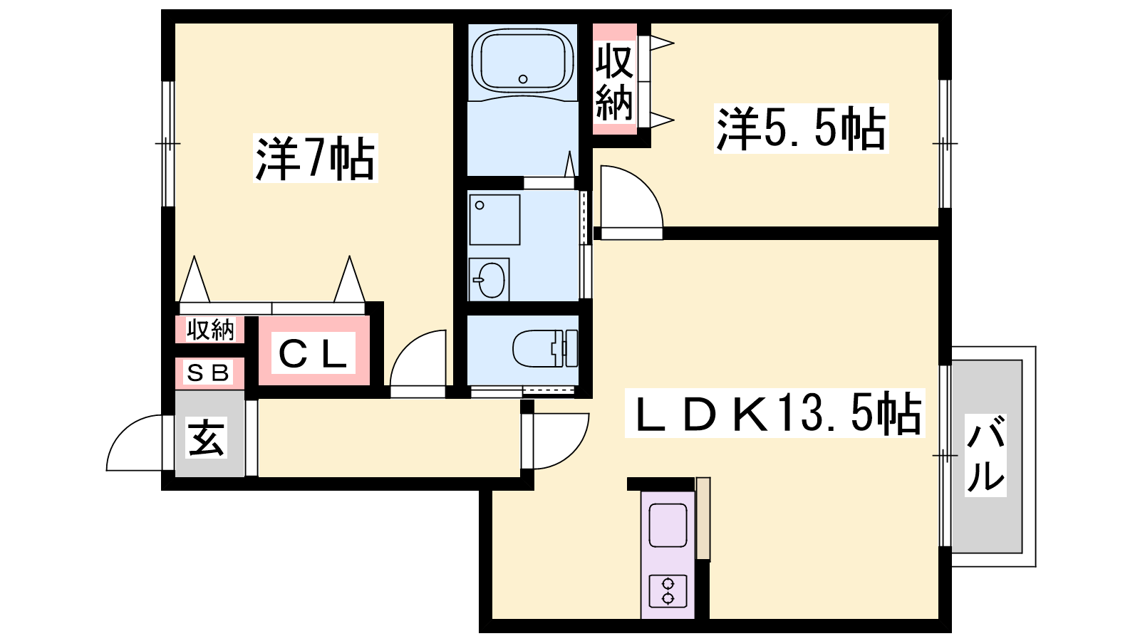 - LDK13.5帖、洋室7帖、洋室5.5帖