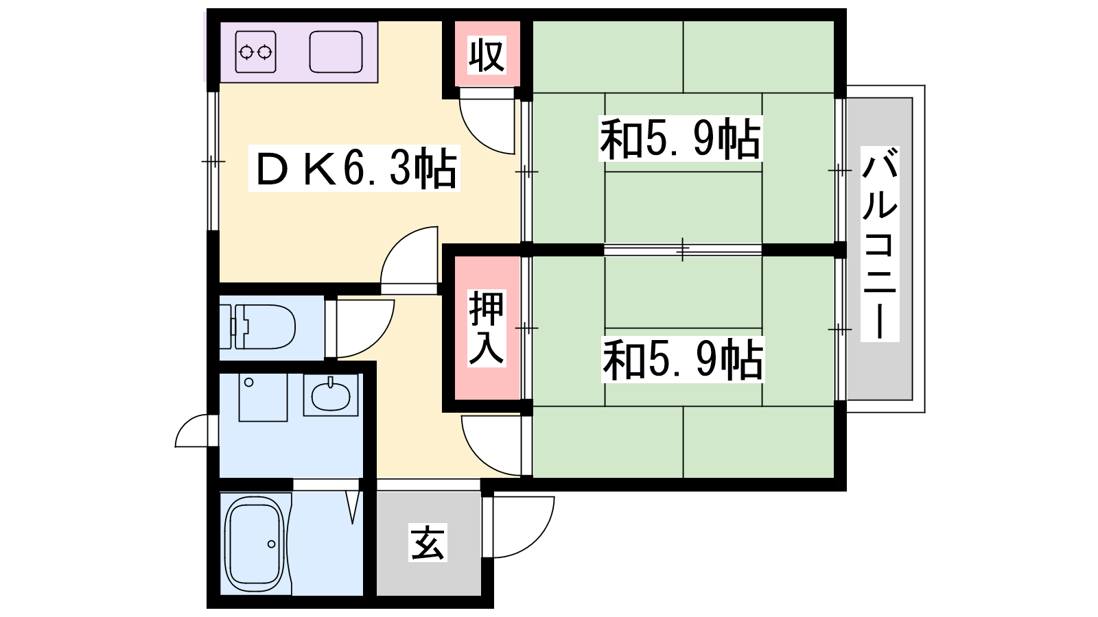 - DK6.3帖、和室5.9帖、和室5.9帖