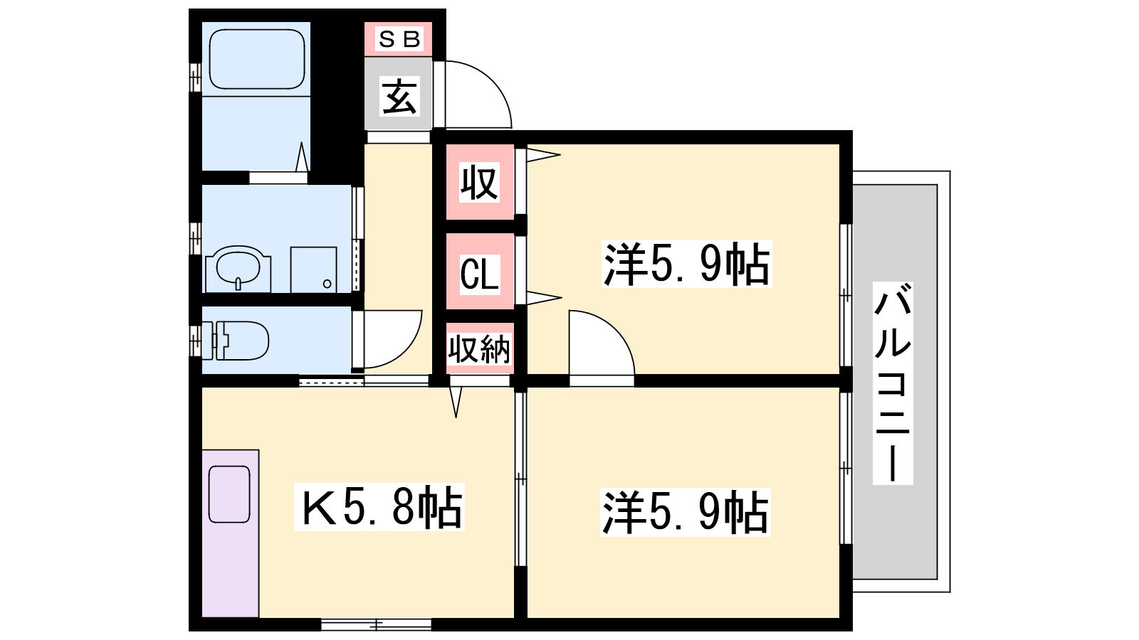 - K5.8帖、洋室5.9帖、洋室5.9帖