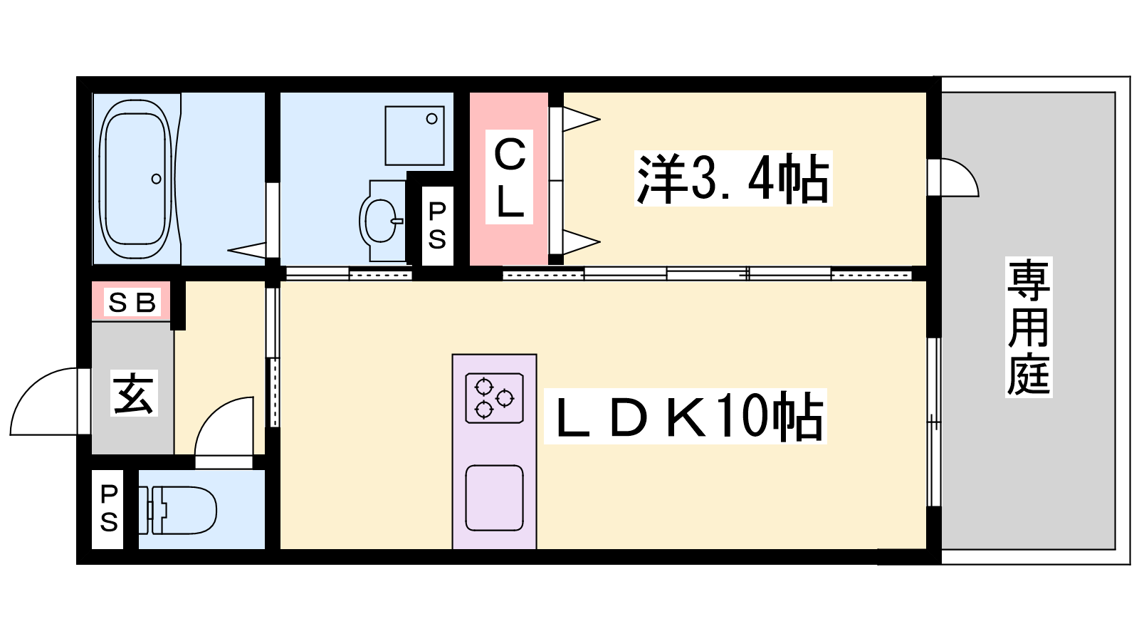- LDK10帖、洋室3.4帖