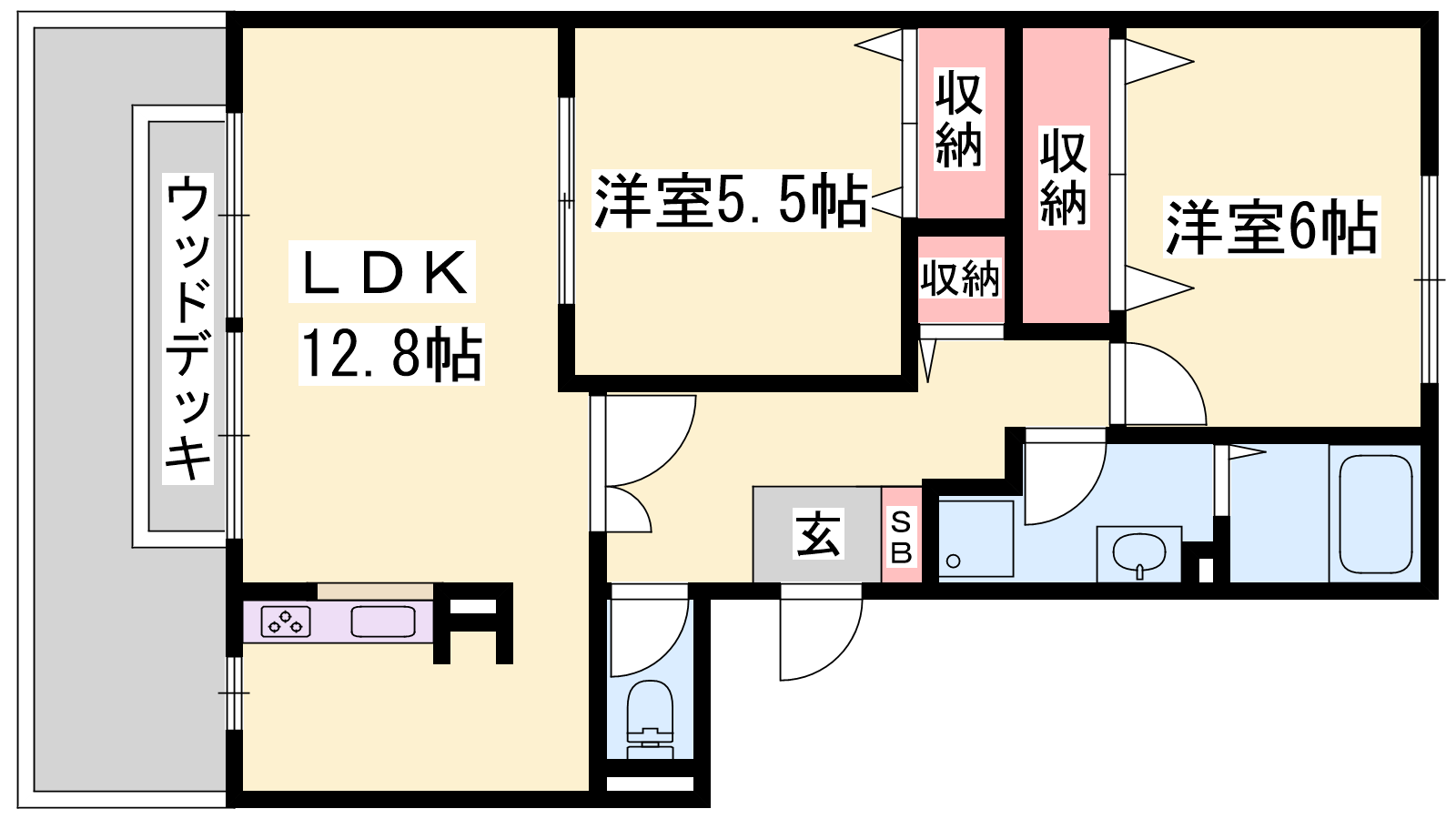 - LDK12.8帖、洋室6帖、洋室5.5帖