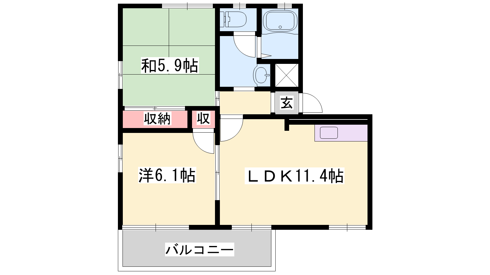 - LDK11.4帖、洋室6.1帖、和室5.9帖