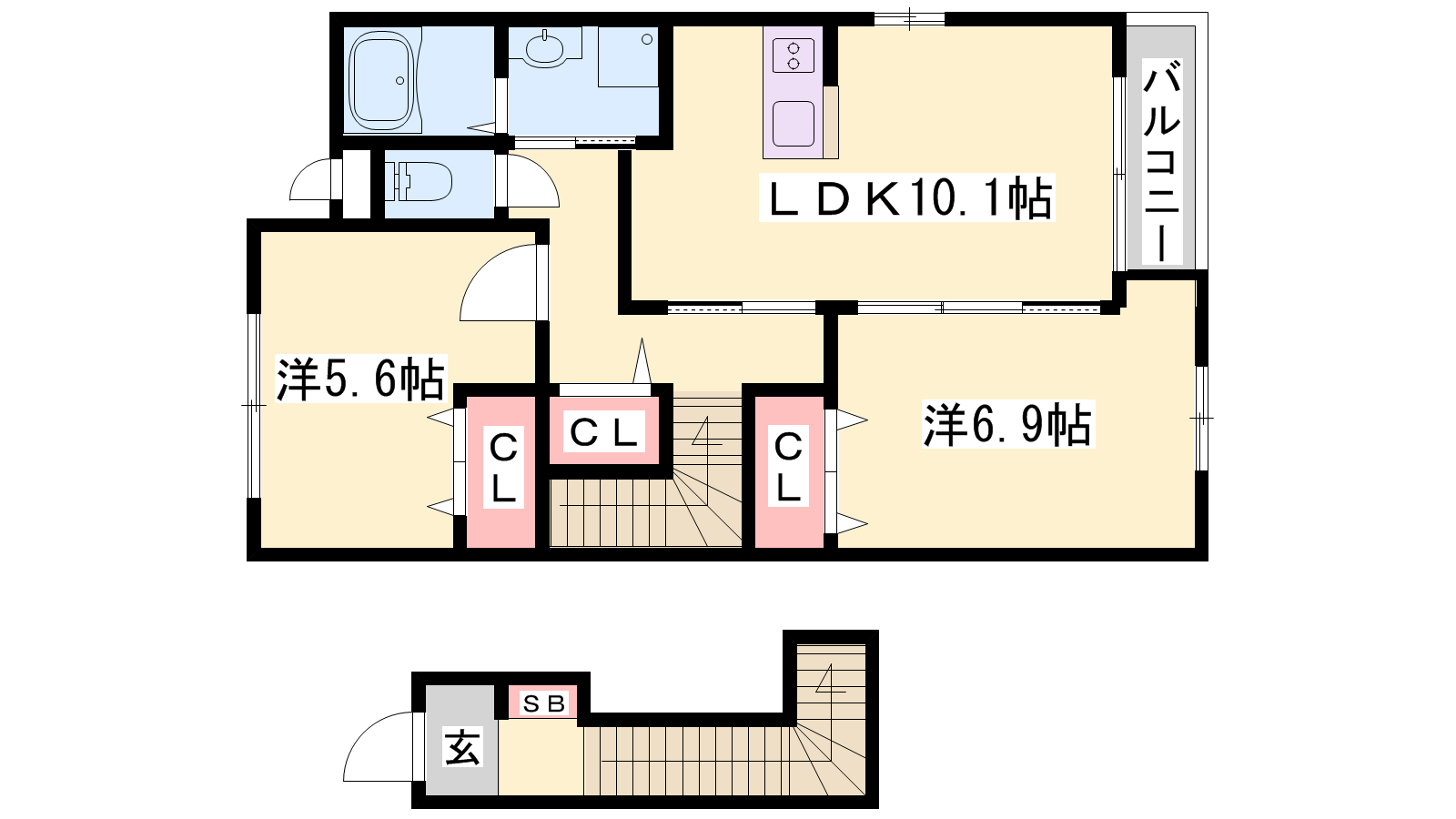 - LDK10.1帖、洋室6.9帖、洋室5.6帖