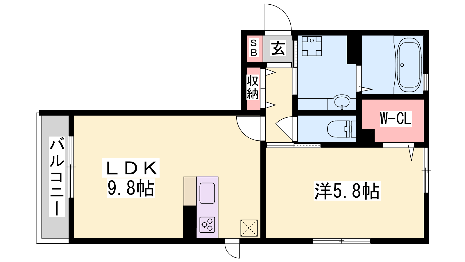 - LDK9.8帖、洋室5.8帖