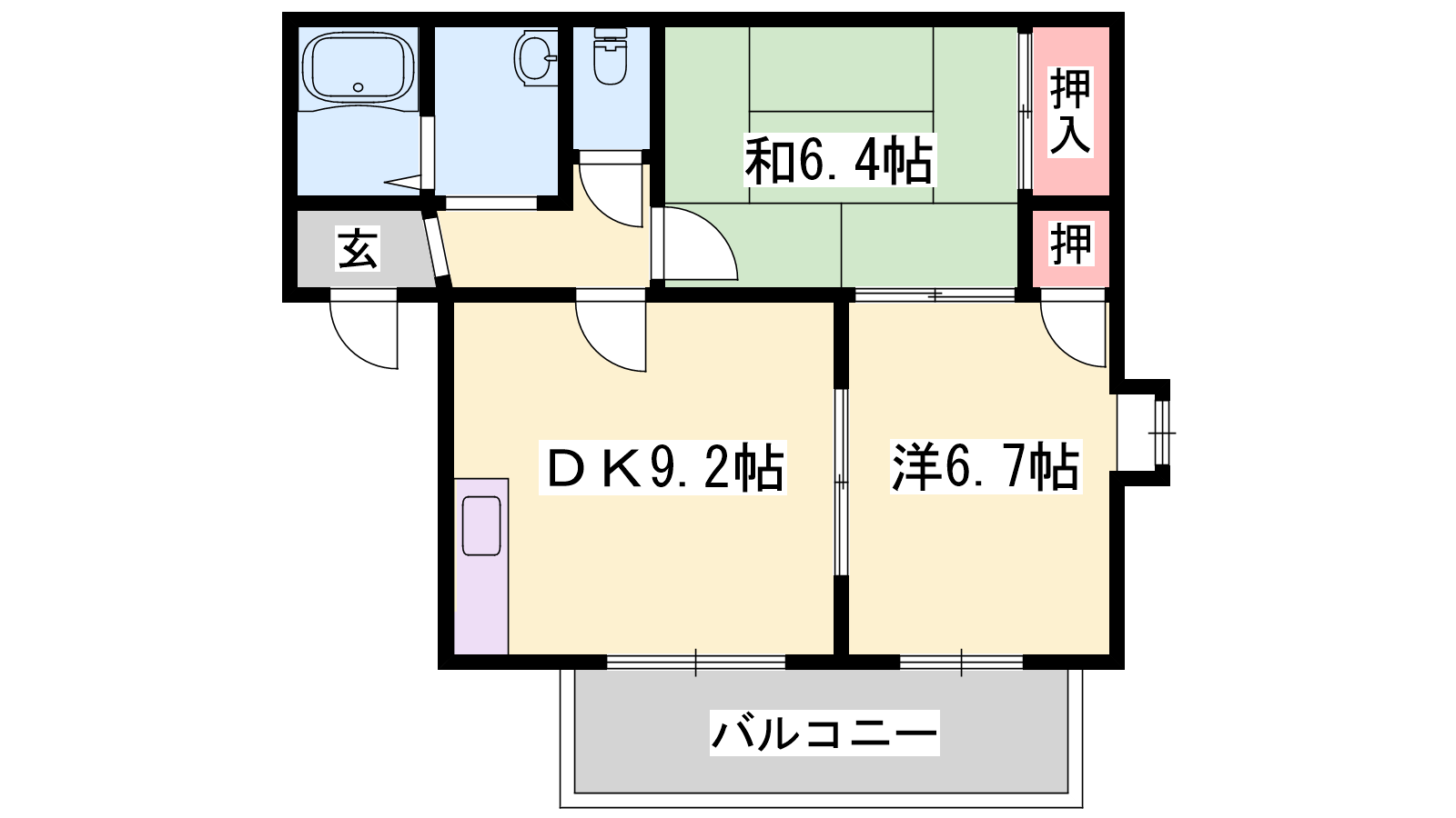 - DK9.2帖、和室6.4帖、洋室6.7帖