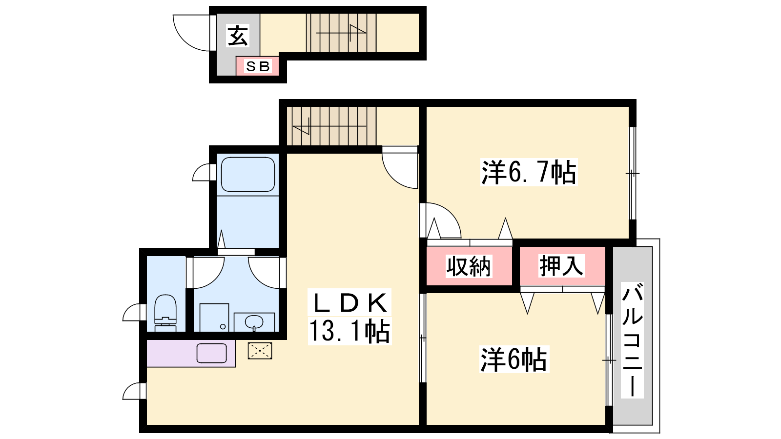 - LDK13.1帖、洋室6.7帖、洋室6帖