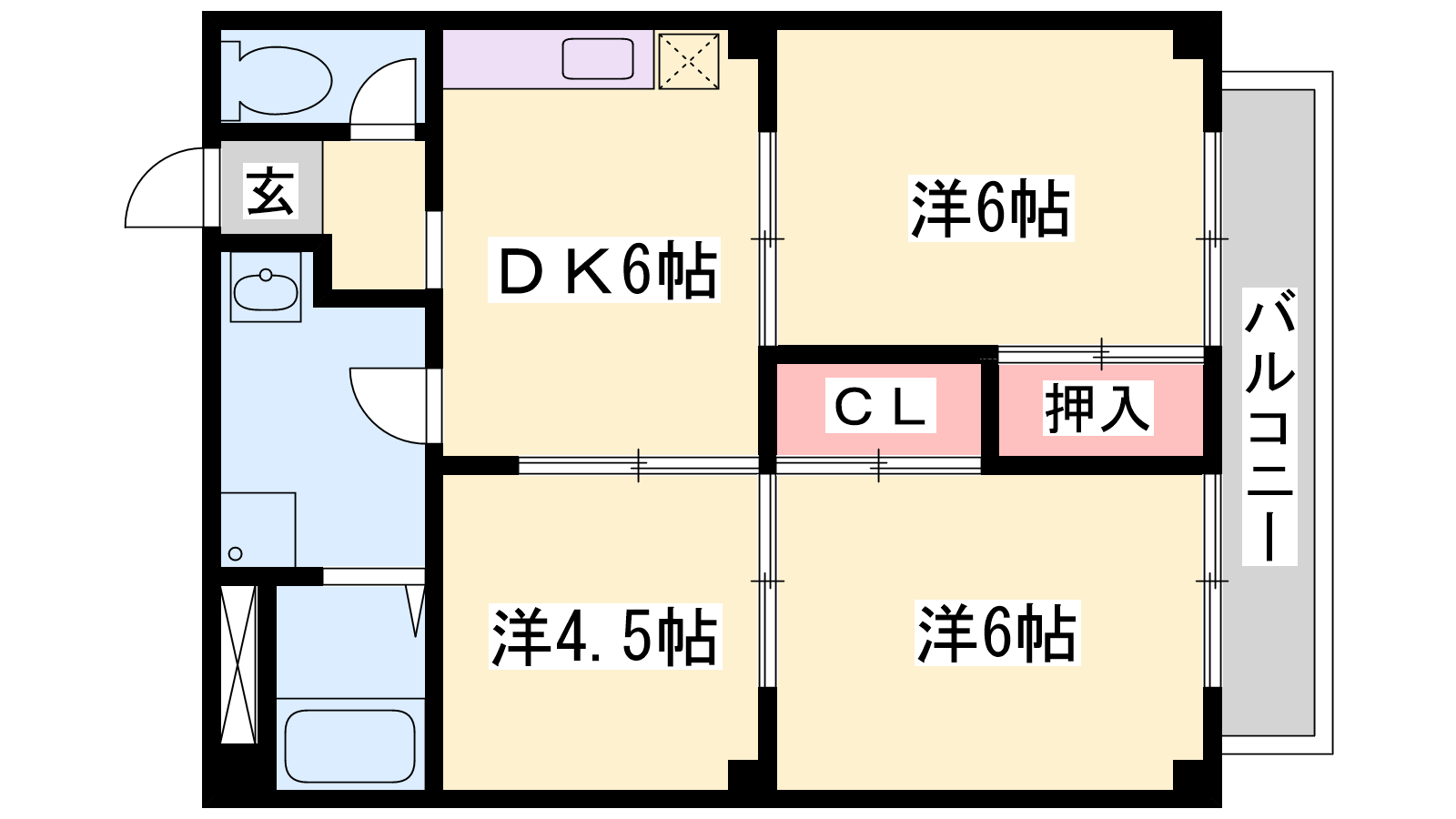 - DK6帖、洋室6帖、洋室6帖、洋室4.5帖