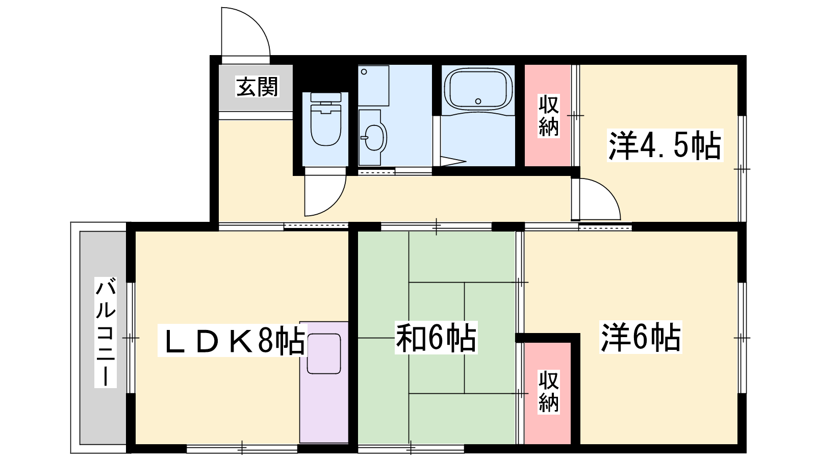 - DK8帖、洋室6帖、洋室4.5帖、和室6帖