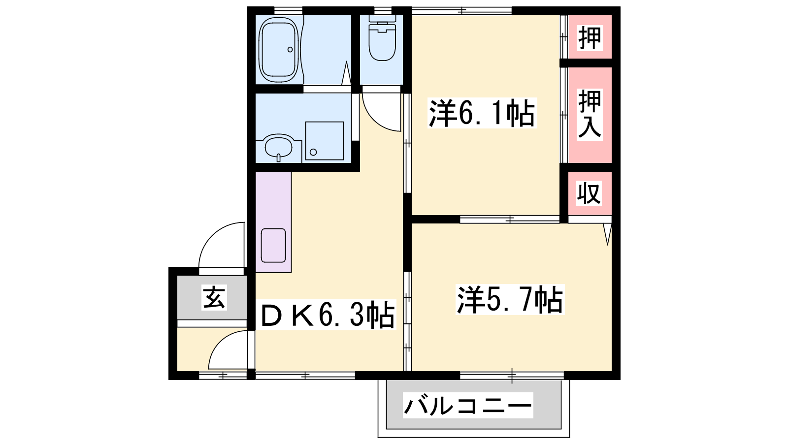 - DK6.3帖、洋室5.7帖、洋室6.1帖