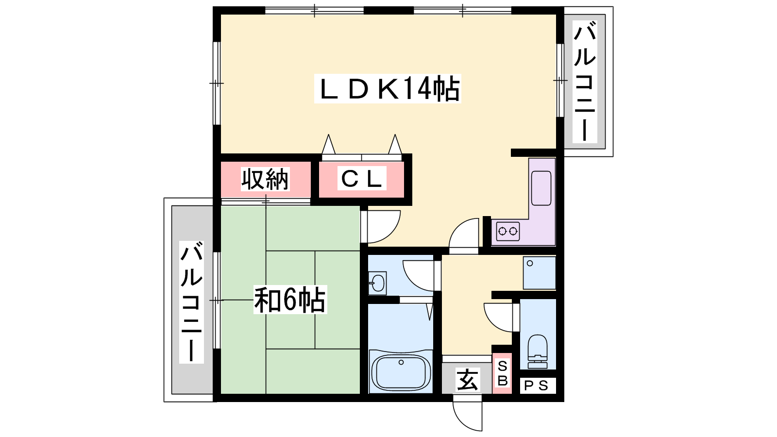 - LDK14帖、洋室6帖