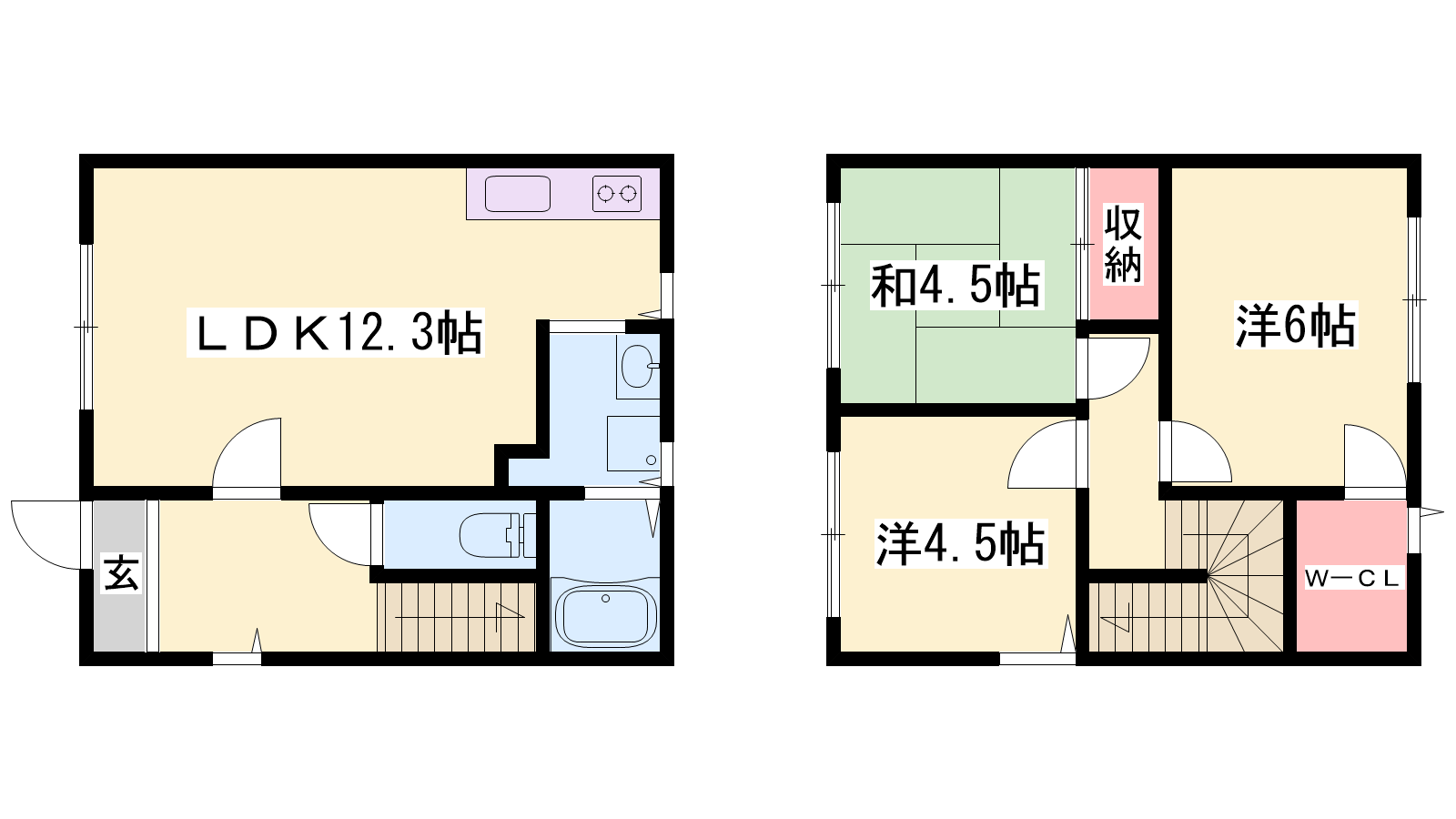 - LDK12.3帖、洋室6帖、洋室4.5帖、和室4.5帖