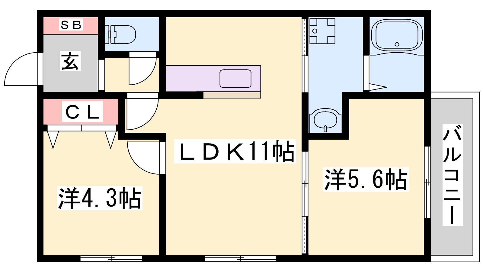 - LDK11帖、洋室5.6帖、洋室4.3帖