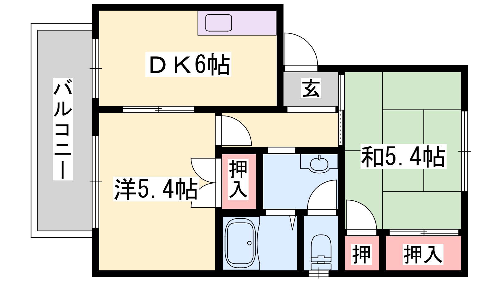 - DK6帖、和室5.4帖、洋室5.4帖