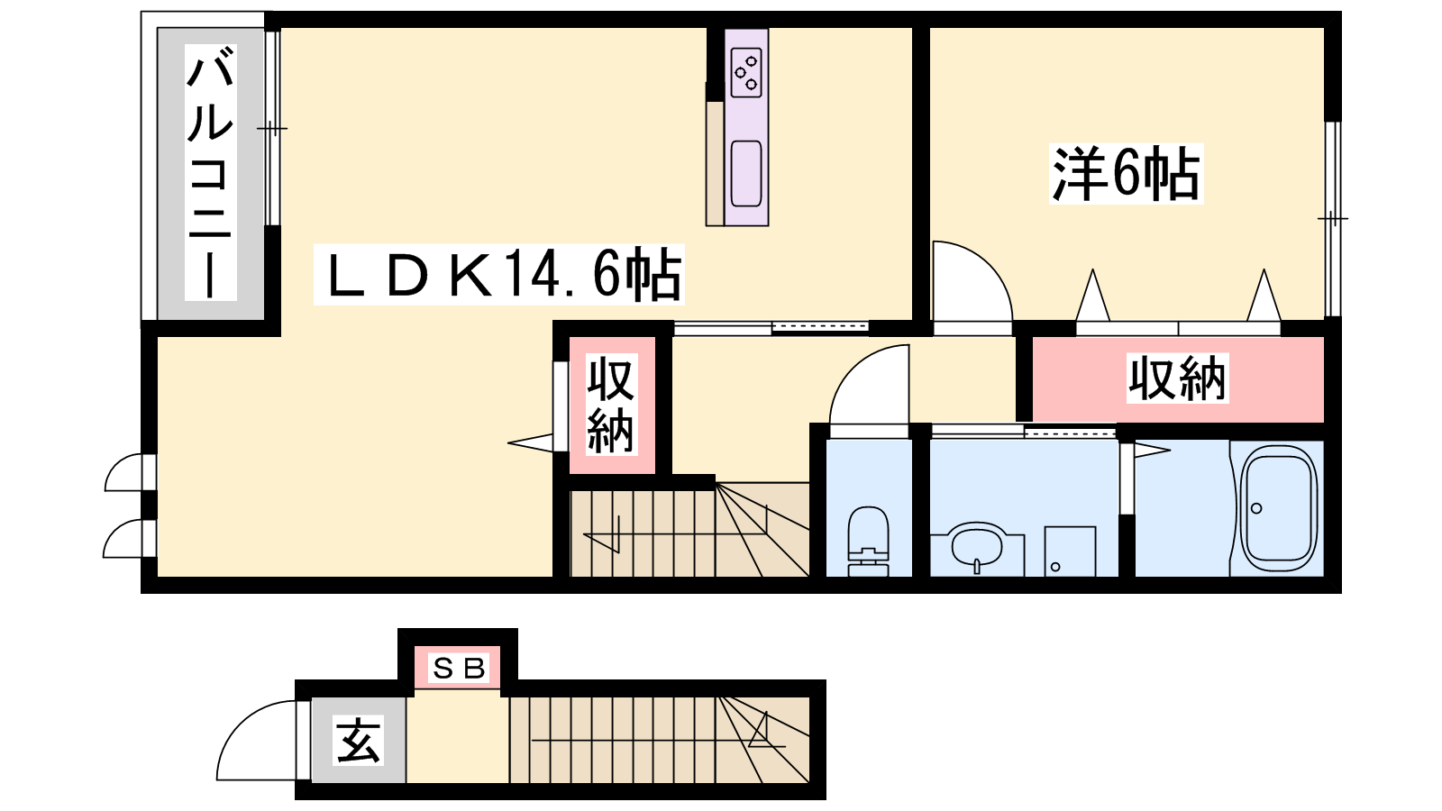 - LDK14.6帖、洋室6帖