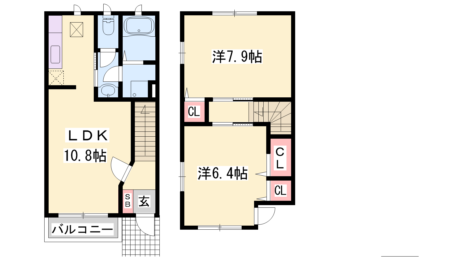 - LDK10.8帖、洋室7.9帖、洋室6.4帖