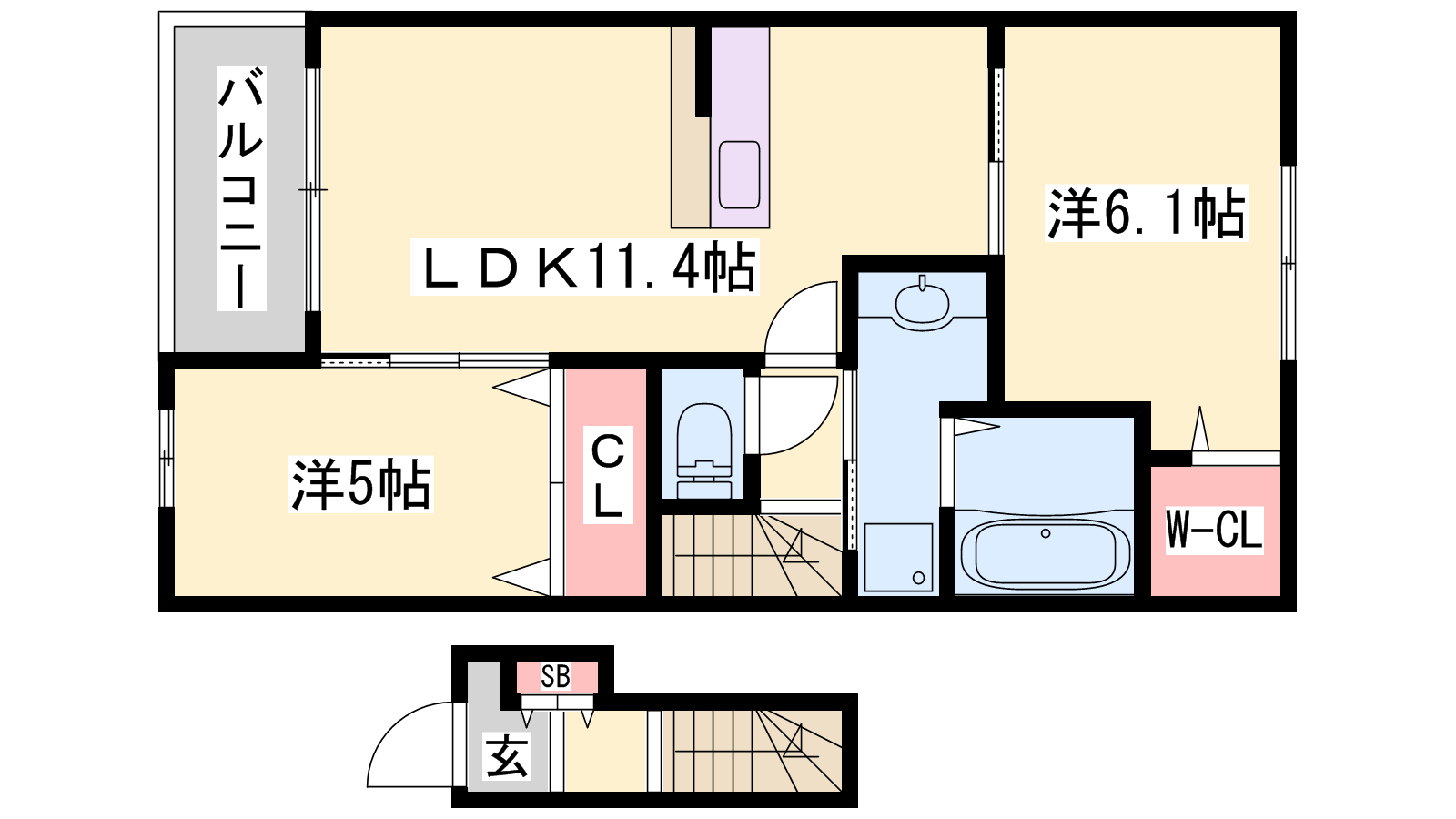 - LDK11.4帖、洋室6.1帖、洋室5.4帖