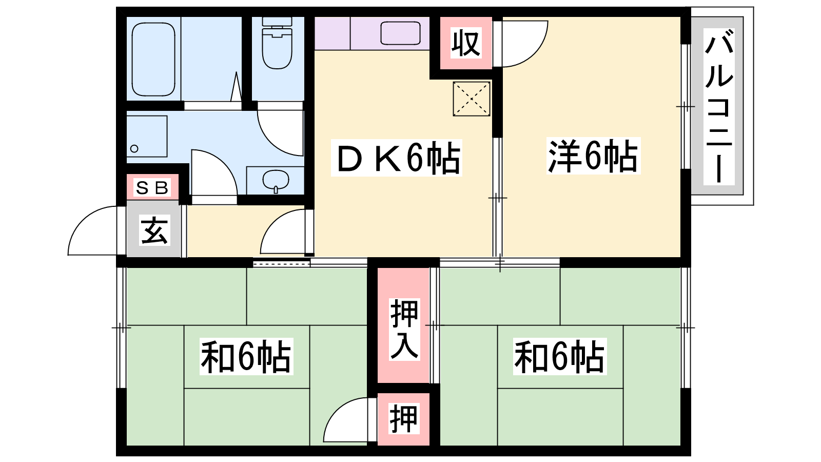 - DK6帖、洋室6帖、和室6帖、和室6帖