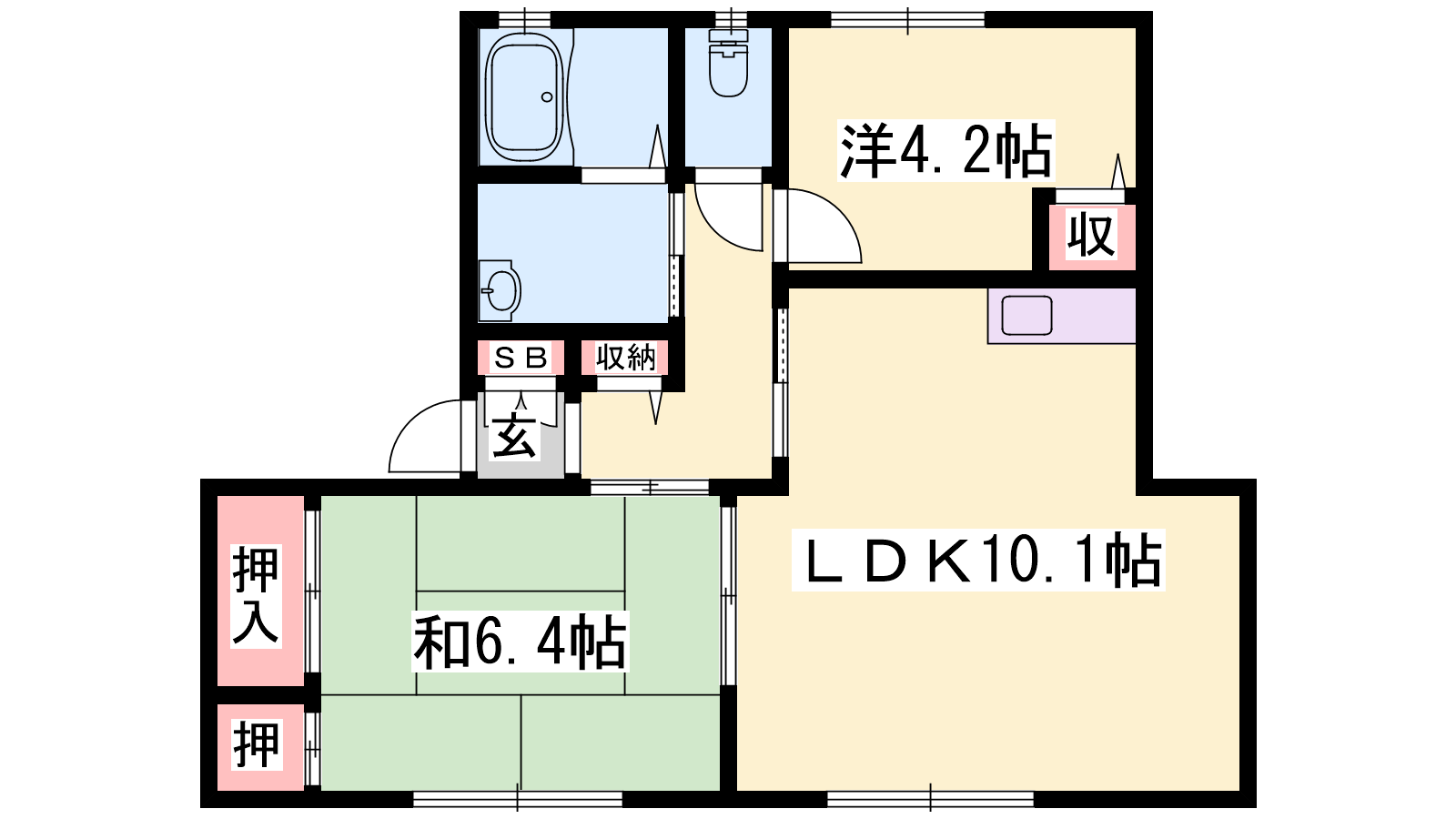 - LDK10.1帖、和室6.4帖、洋室4.2帖