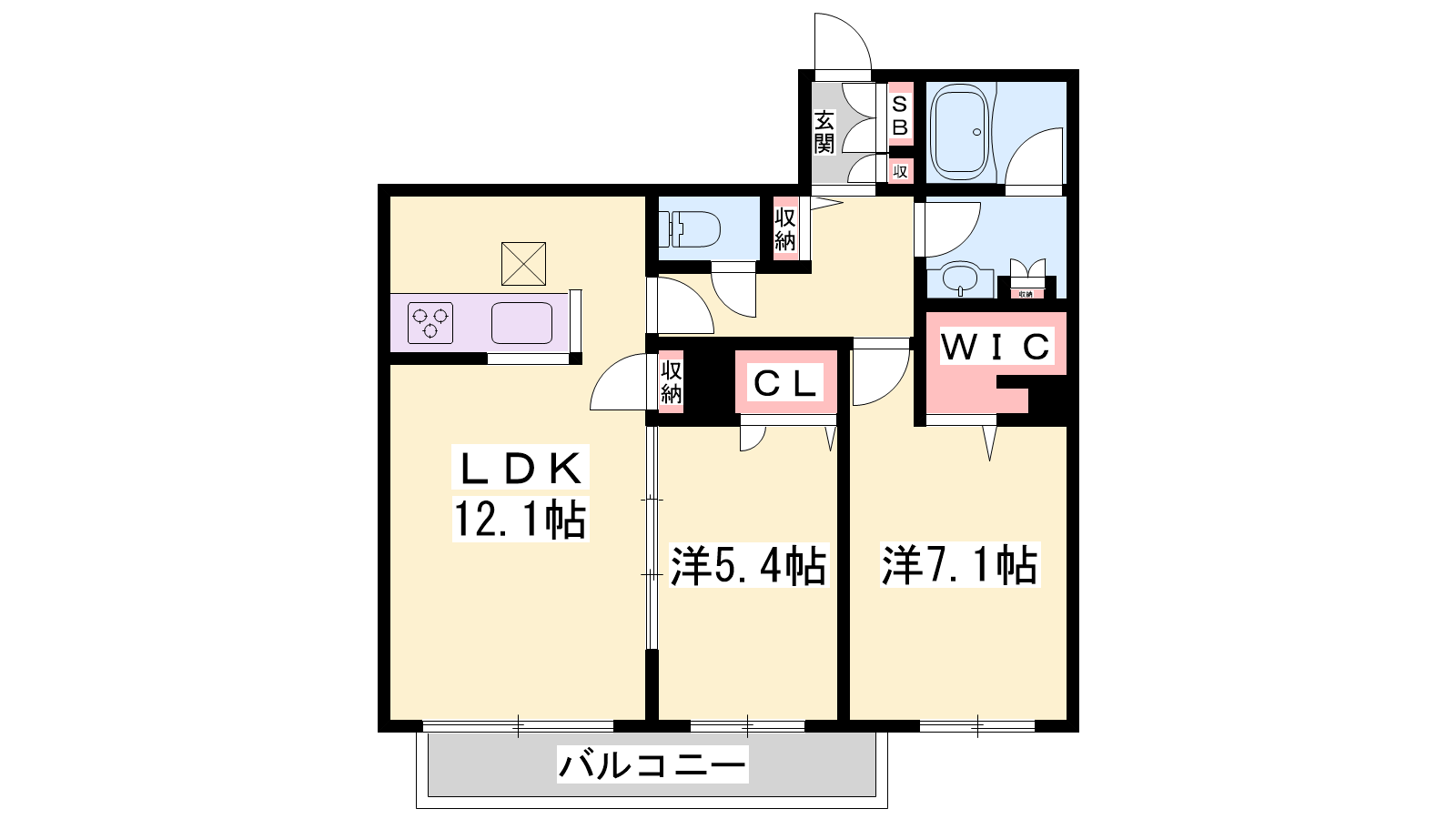- LDK12.1帖、洋室7.1帖、洋室5.4帖