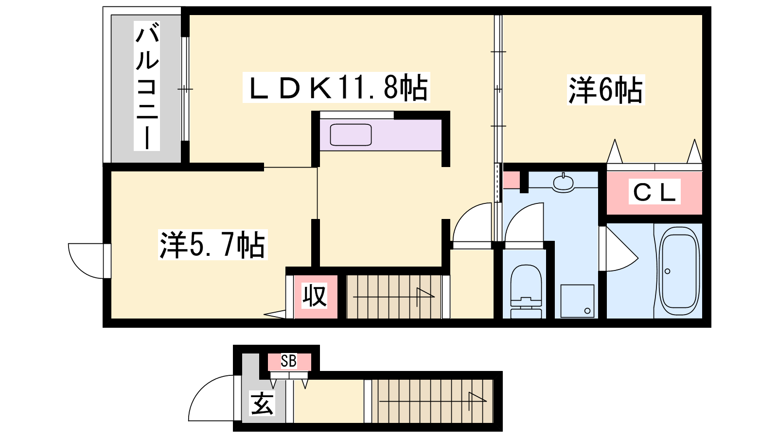 - LDK11.8帖、洋室6帖、洋室5.7帖