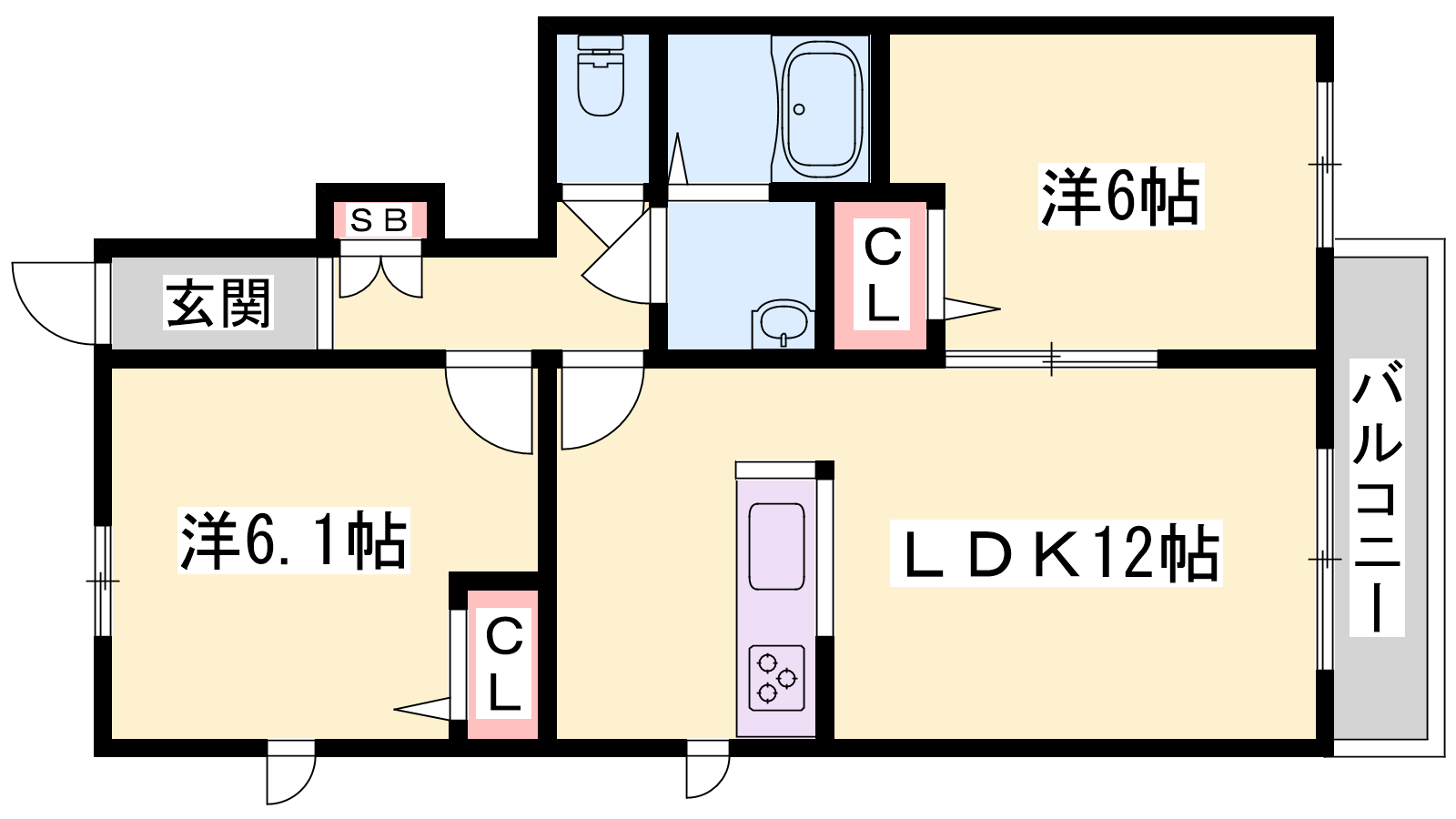 - LDK12帖、洋室6.1帖、洋室6帖