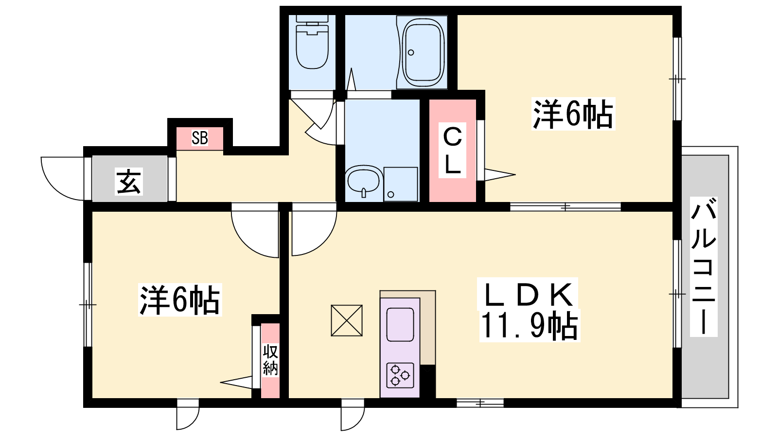 - LDK11.9帖、洋室6帖、洋室6帖