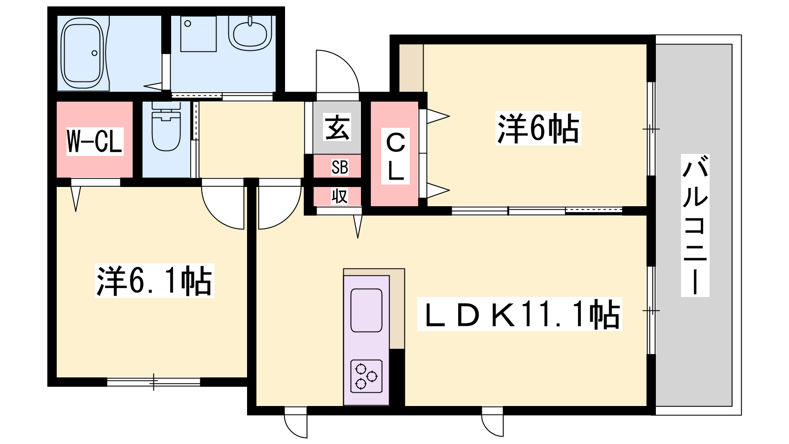 - LDK11.1帖、洋室6.5帖、洋室6帖