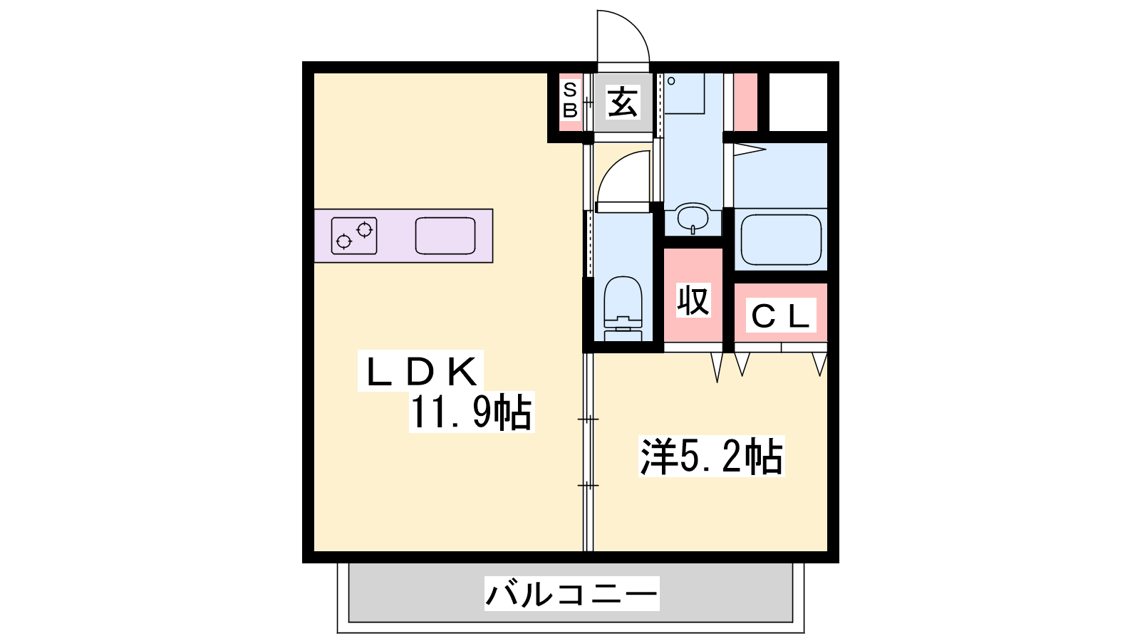 - LDK11.9帖、洋室5.2帖