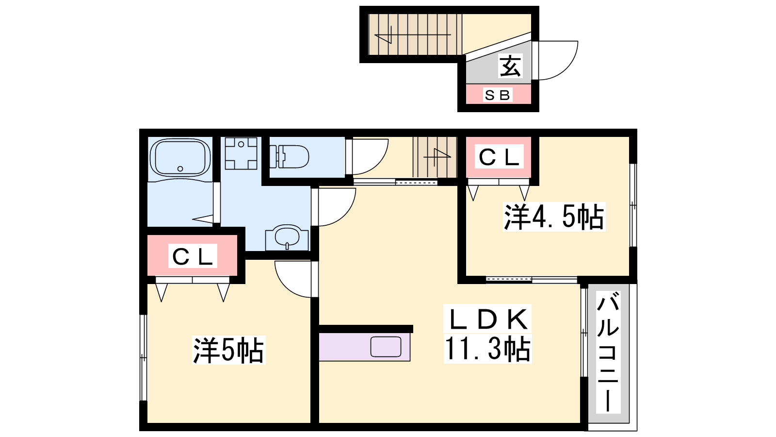 - LDK11.3帖、洋室5帖、洋室4.5帖