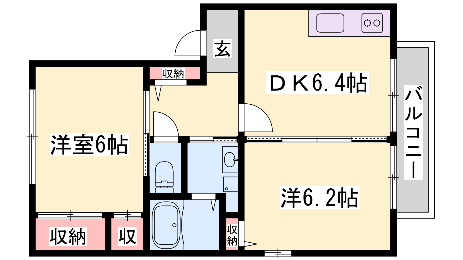 - DK6.4帖、洋室6.2帖、洋室6.1帖