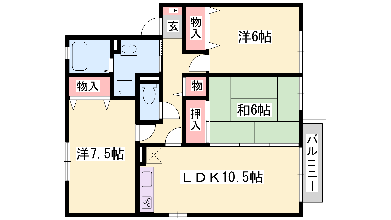- LDK10.5帖、洋室7.5帖、洋室6帖、和室6帖