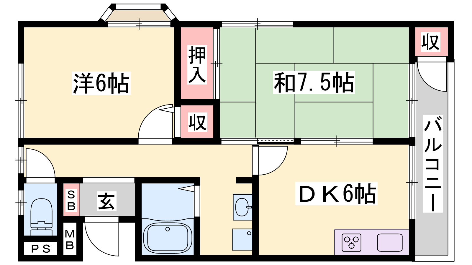 - DK6帖、洋室6帖、和室7.5帖