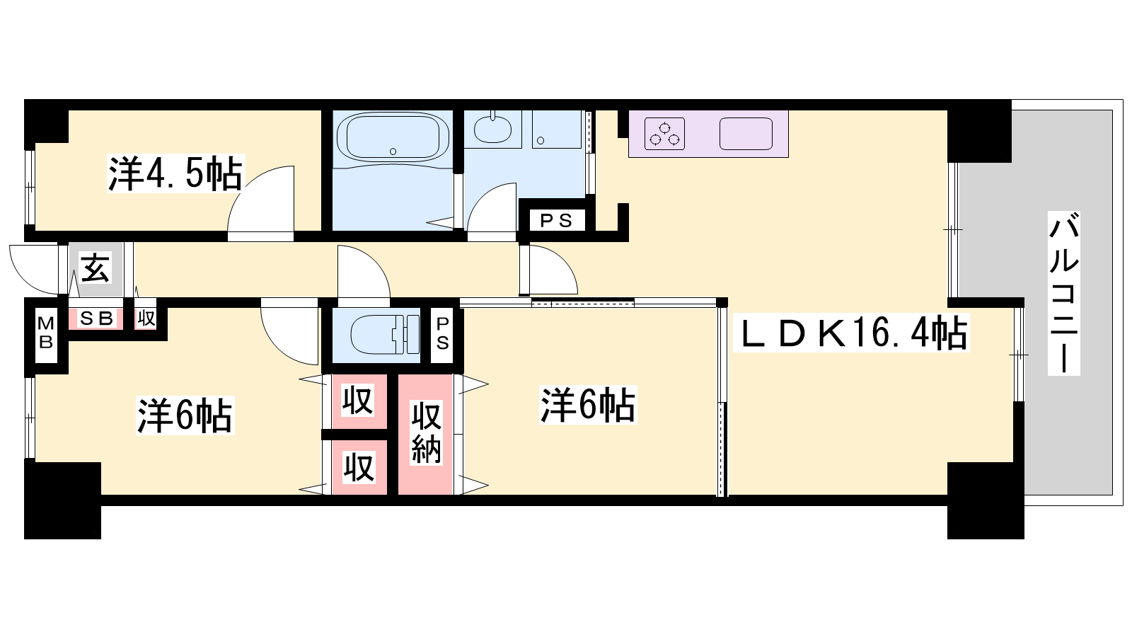 - LDK16.4帖、洋室6帖、和室6帖、洋室4.5帖