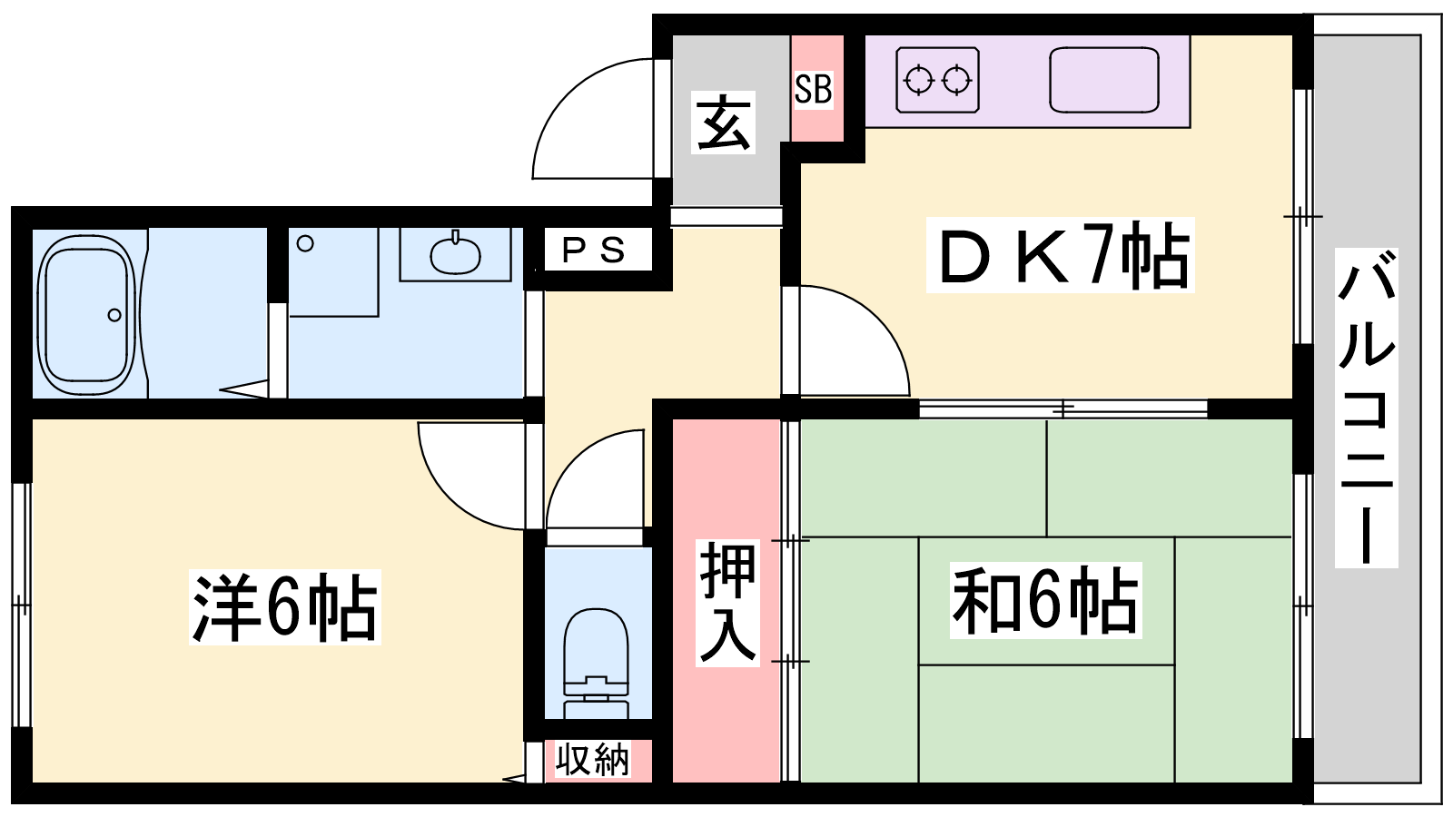 - DK7帖、洋室6帖、和室6帖