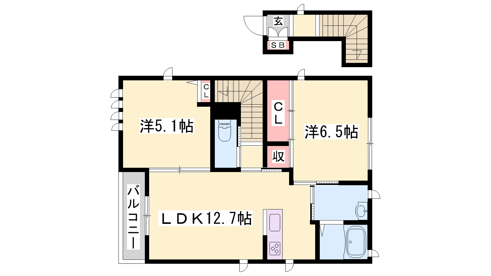 - LDK12.7帖、洋室6.5帖、洋室5.1帖