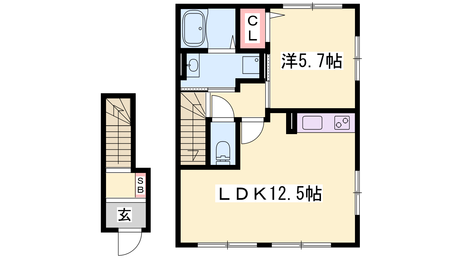 - LDK12.5帖、洋室5.7帖
