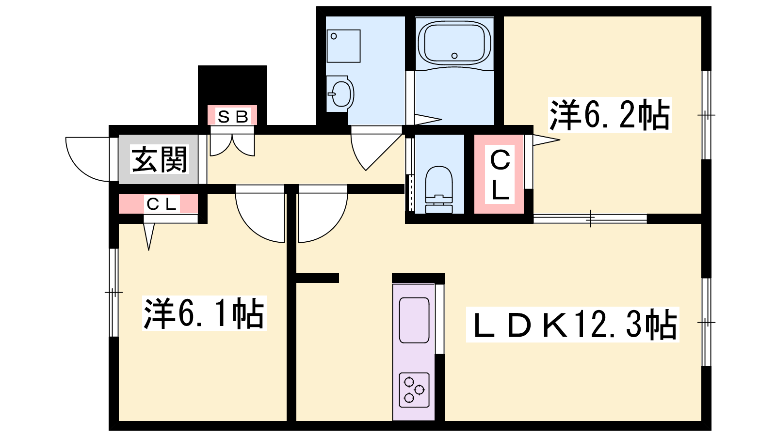 - LDK12.3帖、和室6.2帖、洋室6.1帖