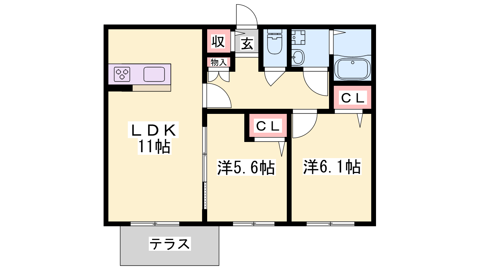 - LDK11帖、洋室6.1帖、洋室5.6帖