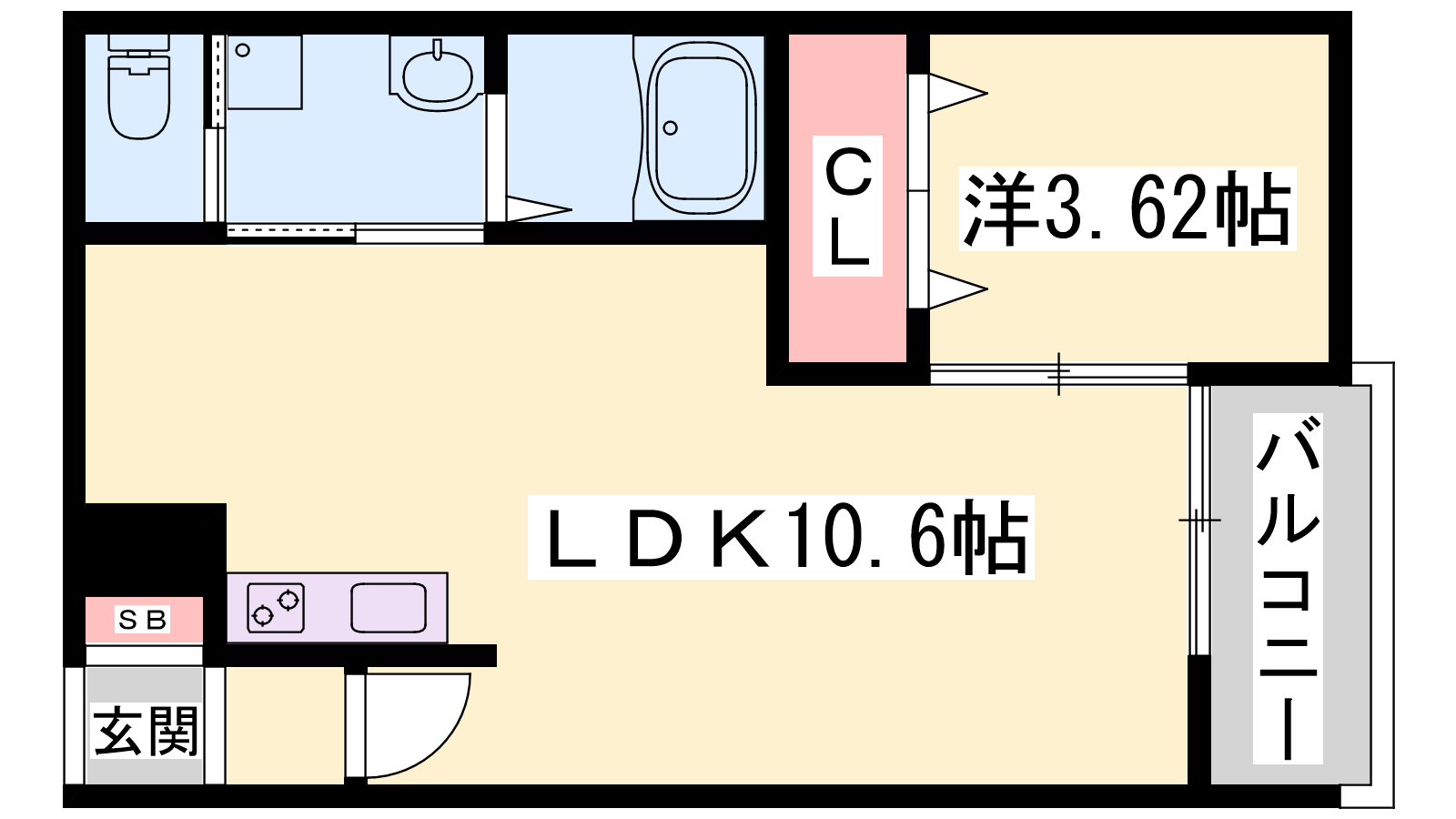 - LDK10.6帖、洋室3.62帖