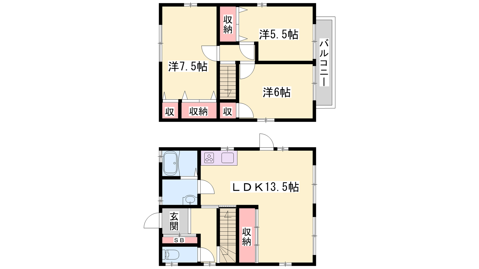 - LDK13.5帖、洋室7.5帖、洋室6帖、洋室5.5帖